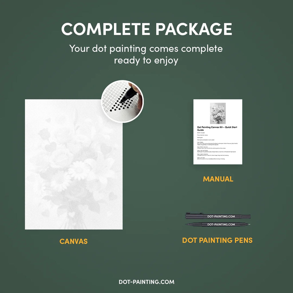 • 1x Premium Canvas (Rolled): High-quality canvas featuring your chosen design. We ship it rolled in a hard tube never folded so you start with a smooth, wrinkle-free surface.
