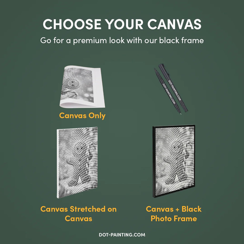 •1x Płótno Premium (rolowane): wysokiej jakości płótno z wybranym przez Ciebie wzorem. Wysyłamy je zwinięte w twardej tubie, nigdy złożone, dzięki czemu zaczynasz na gładkiej powierzchni bez zagnieceń.