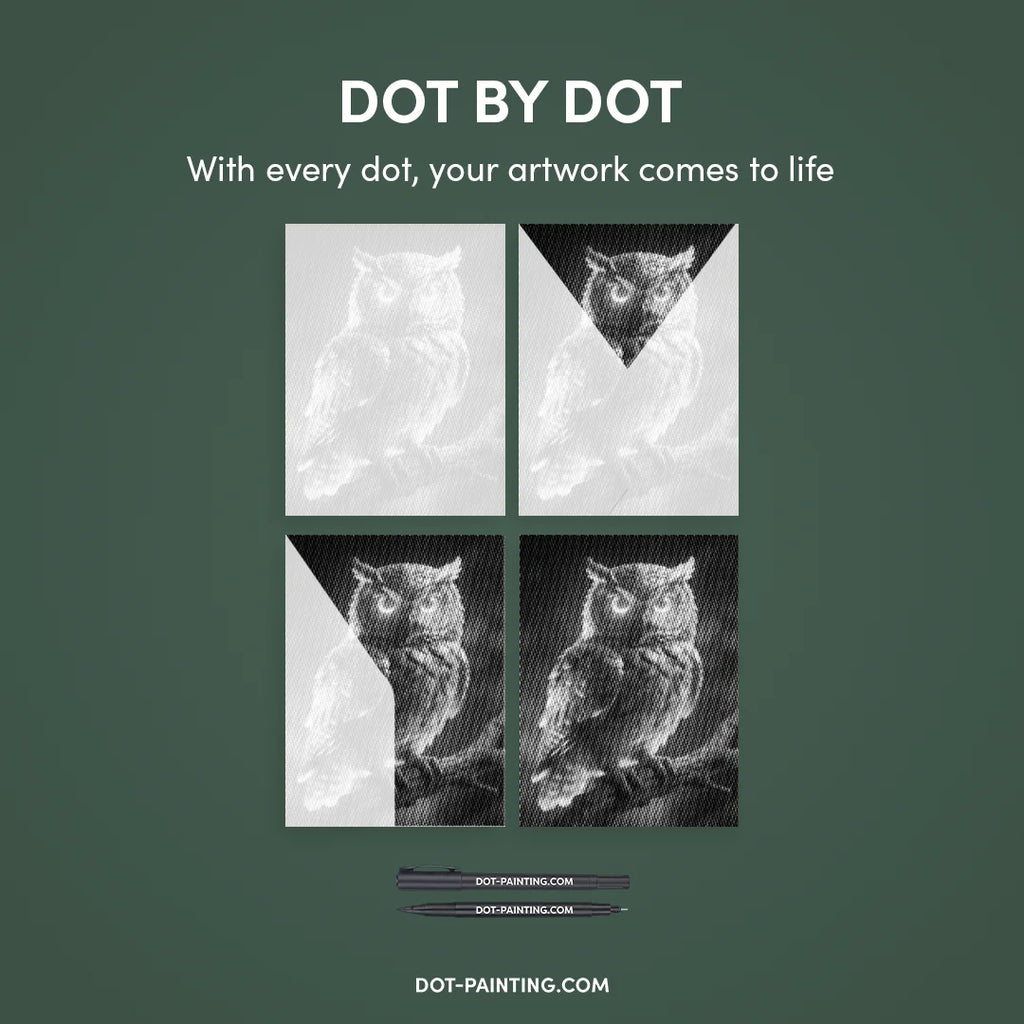 With Dot Painting, you use high-quality markers to bring the Owl 2 Dot Painting kit to life, one dot at a time. It’s cleaner, easier, and incredibly satisfying.