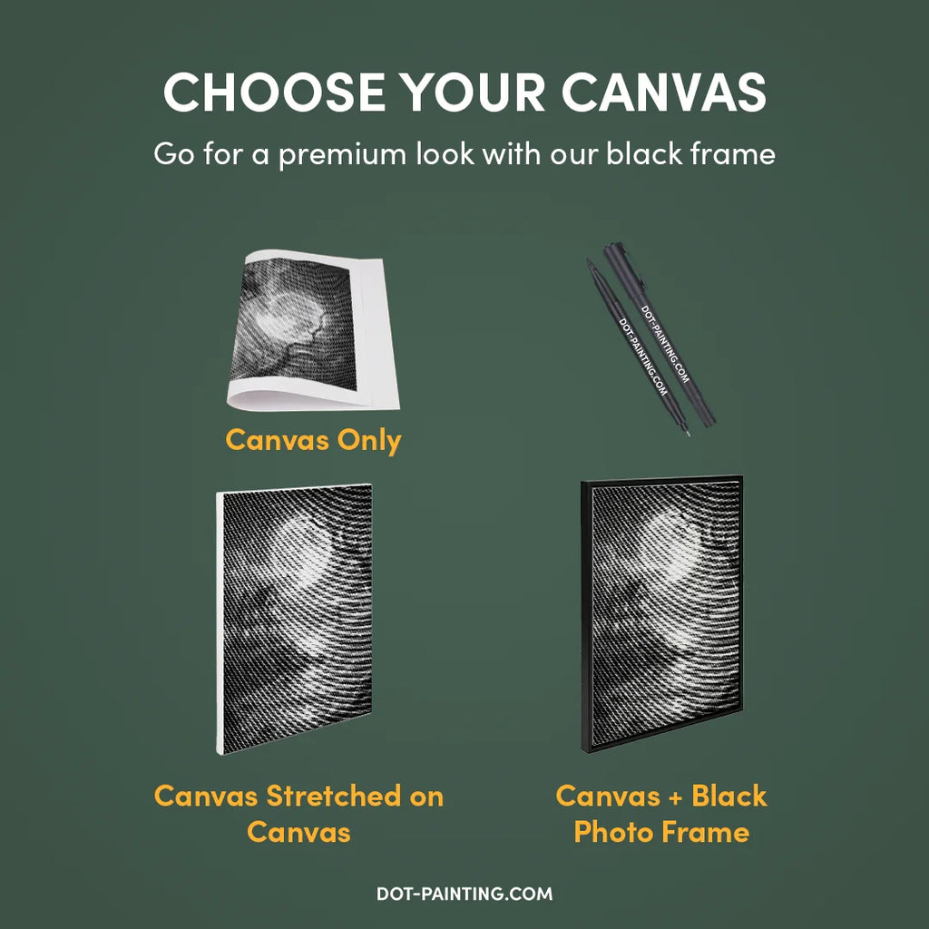 •1x Płótno Premium (rolowane): wysokiej jakości płótno z wybranym przez Ciebie wzorem. Wysyłamy je zwinięte w twardej tubie, nigdy złożone, dzięki czemu zaczynasz na gładkiej powierzchni bez zagnieceń.